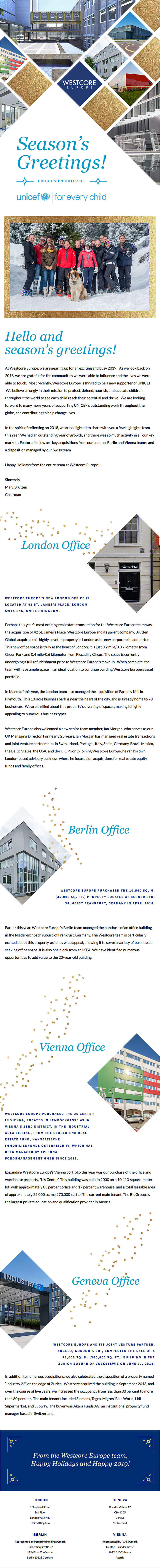 Westcore Europe wishes all of its friends happy holidays and happy 2019!